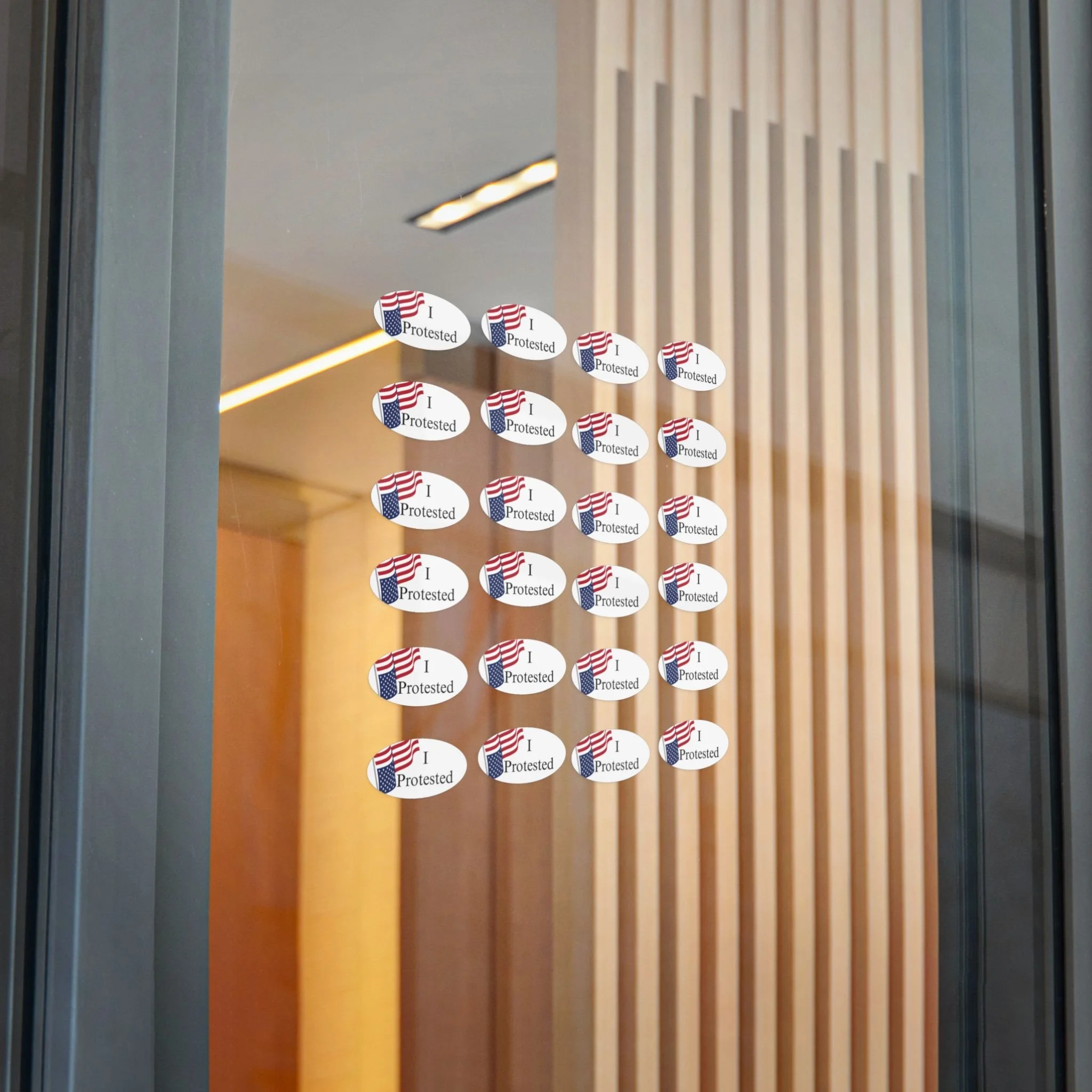 One 6 × 6 in sticker sheet includes 6 “I Protested” stickers. Each sticker is roughly 2.25 in x 1.25 in.