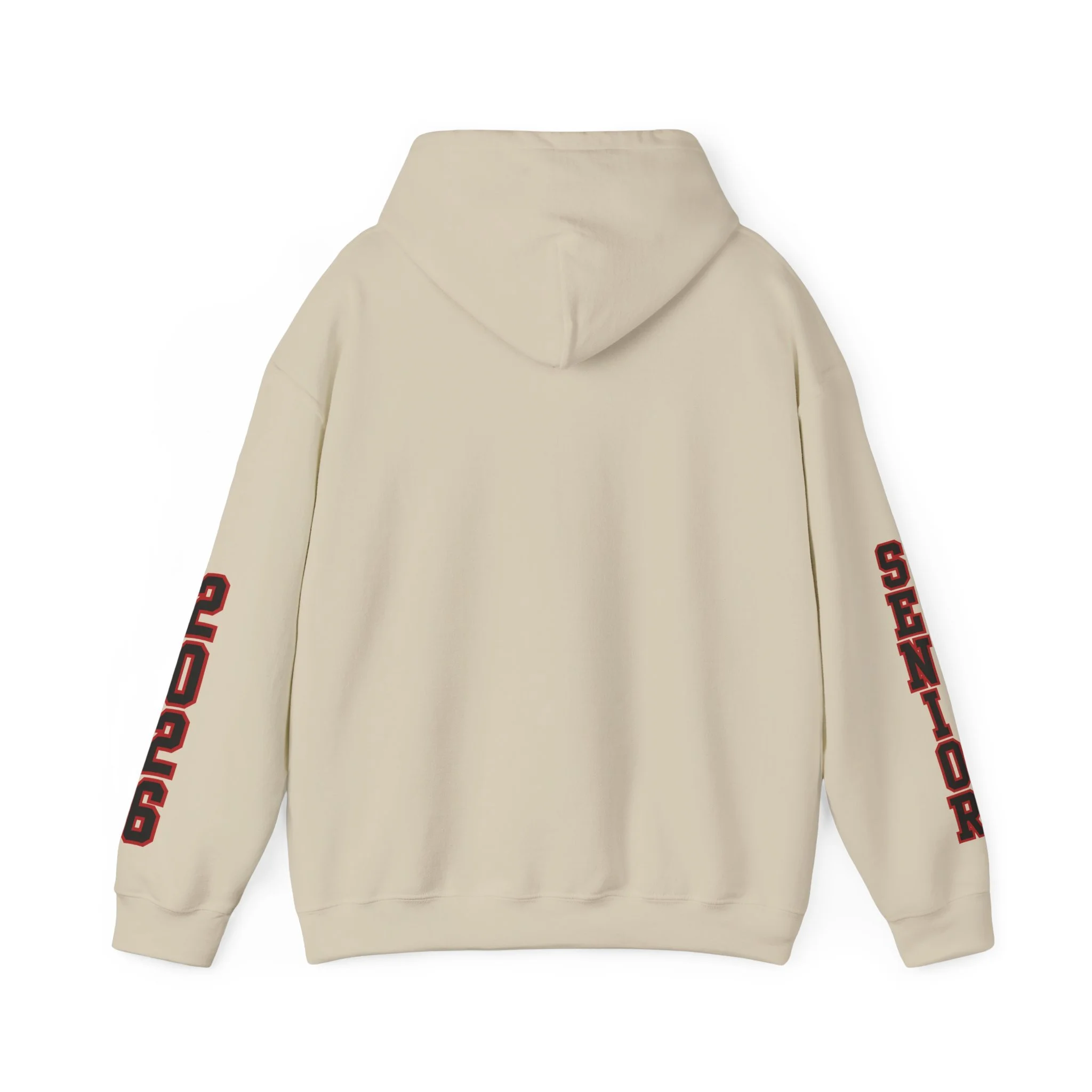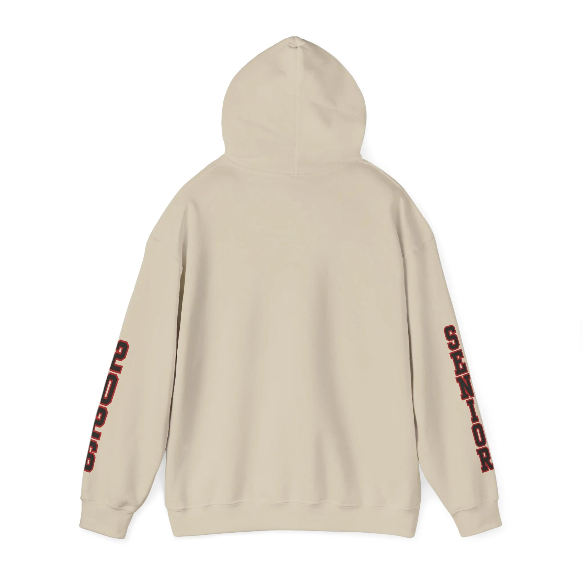 Customize your hoodie exactly how you want: Choose print colors for "SENIOR" on one sleeve and "2026" on the other (school colors, team colors, or favorite hues). Add an optional custom name or short phrase on the back for that extra personal touch. All personalization entered at checkout.